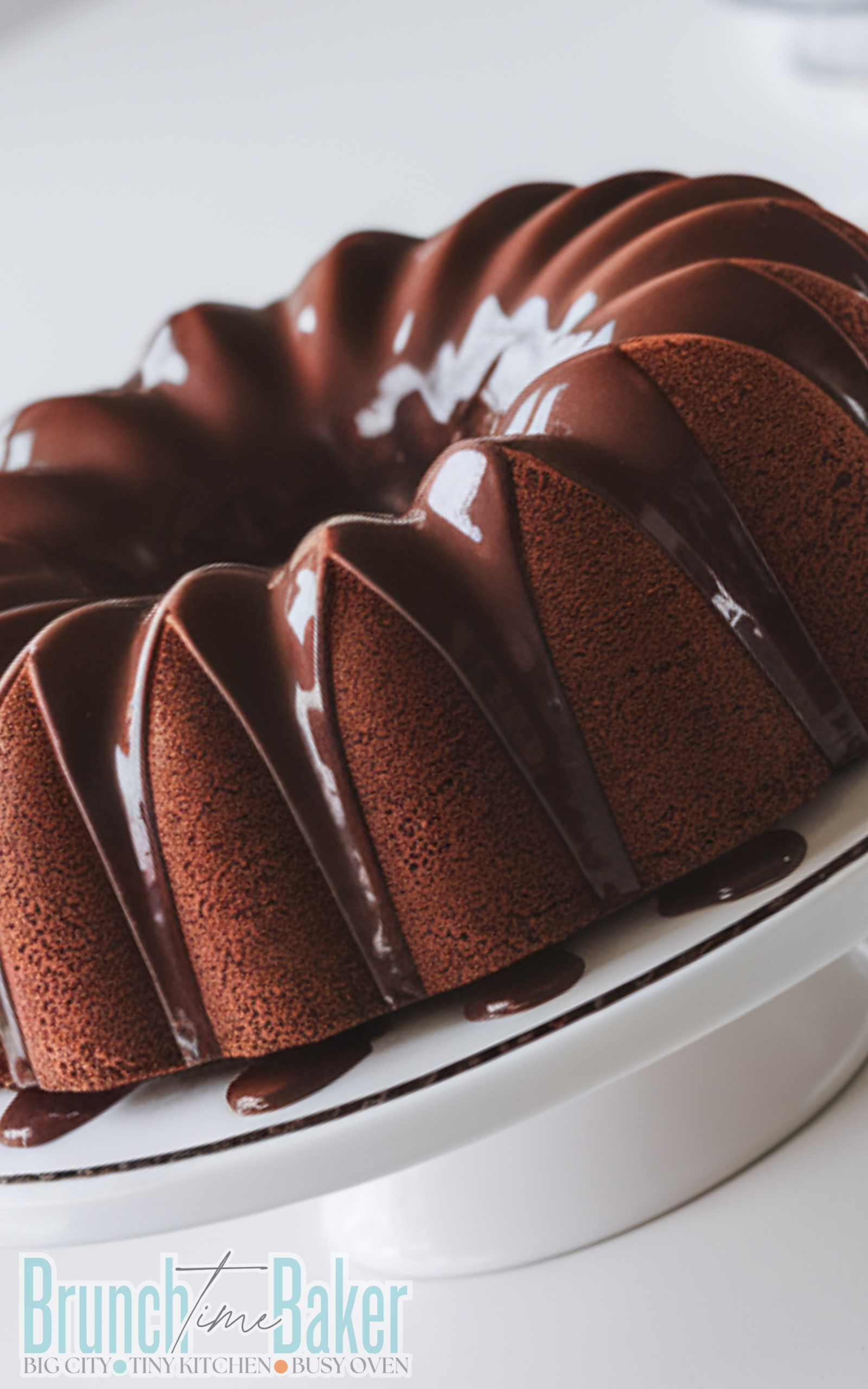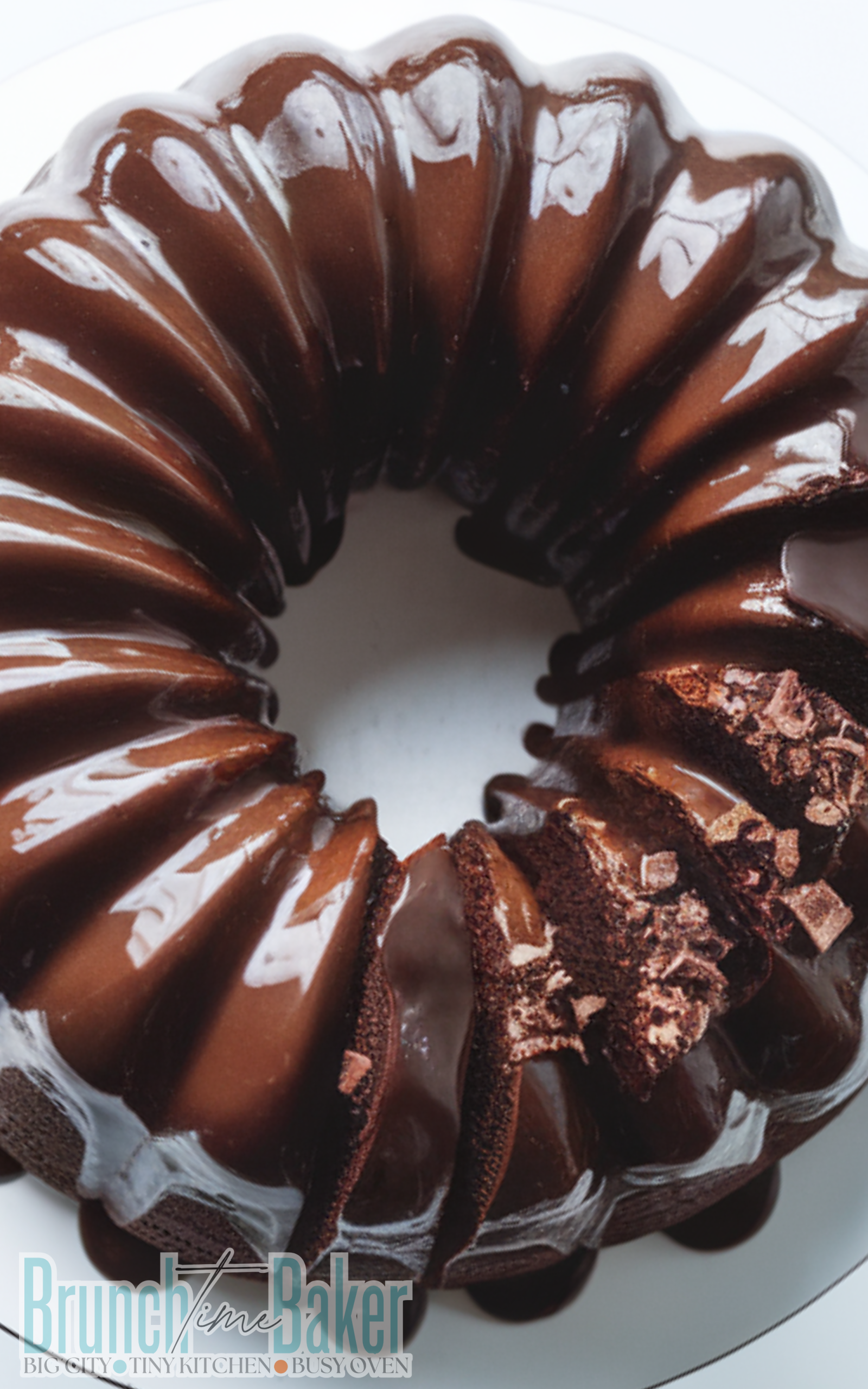 The chocolate bundt cake tastes rich and chocolatey while being soft and moist with a tender crumb and slightly sweet flavor.