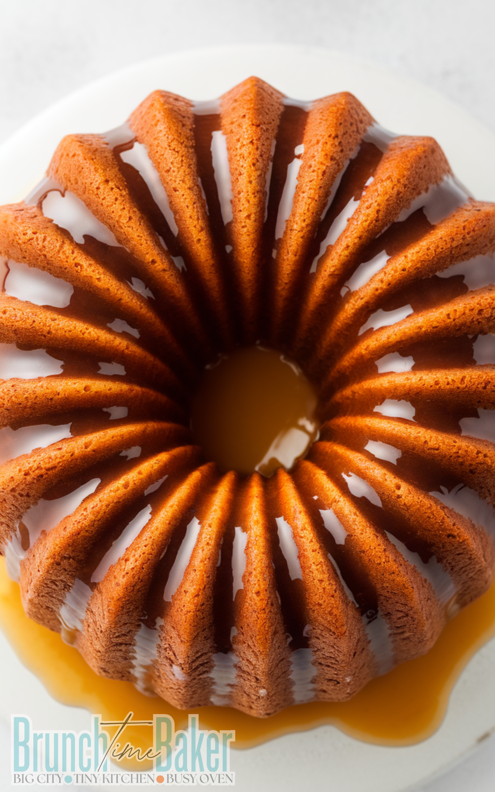 • Remove the cake from the oven let it cool in the pan for 15 minutes then invert it onto a wire rack and pour the warm rum glaze over the cake letting it soak in evenly.