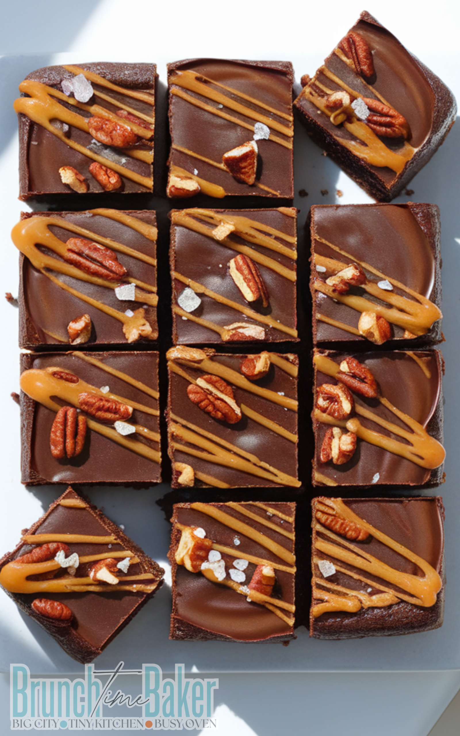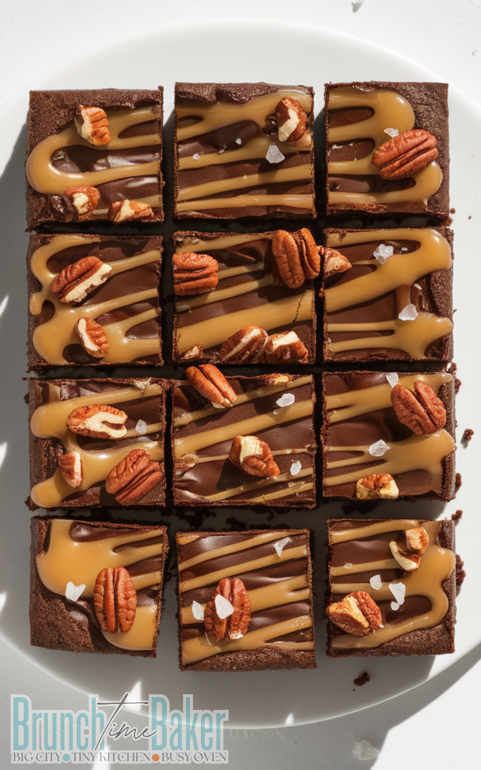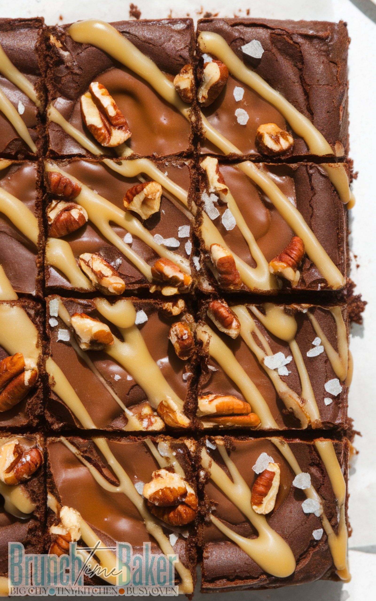 They taste like a warm chocolate dream because the brownies are rich and fudgy while the caramel adds a smooth sweetness and the sea salt gives tiny bursts of salty flavor that balance everything and the pecans bring a buttery crunch that makes every bite exciting.